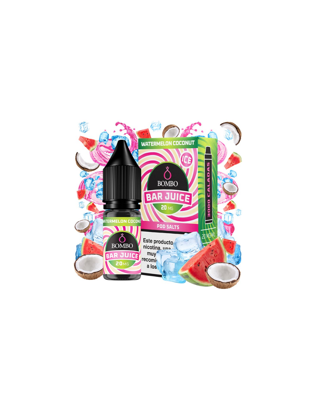 El líquido Watermelon Coconut Ice de Bar Juice Nic Salts by Bombo una mezcla vibrante que combina la jugosidad de la sandía con la suavidad del cremoso coco y un toque de hielo.